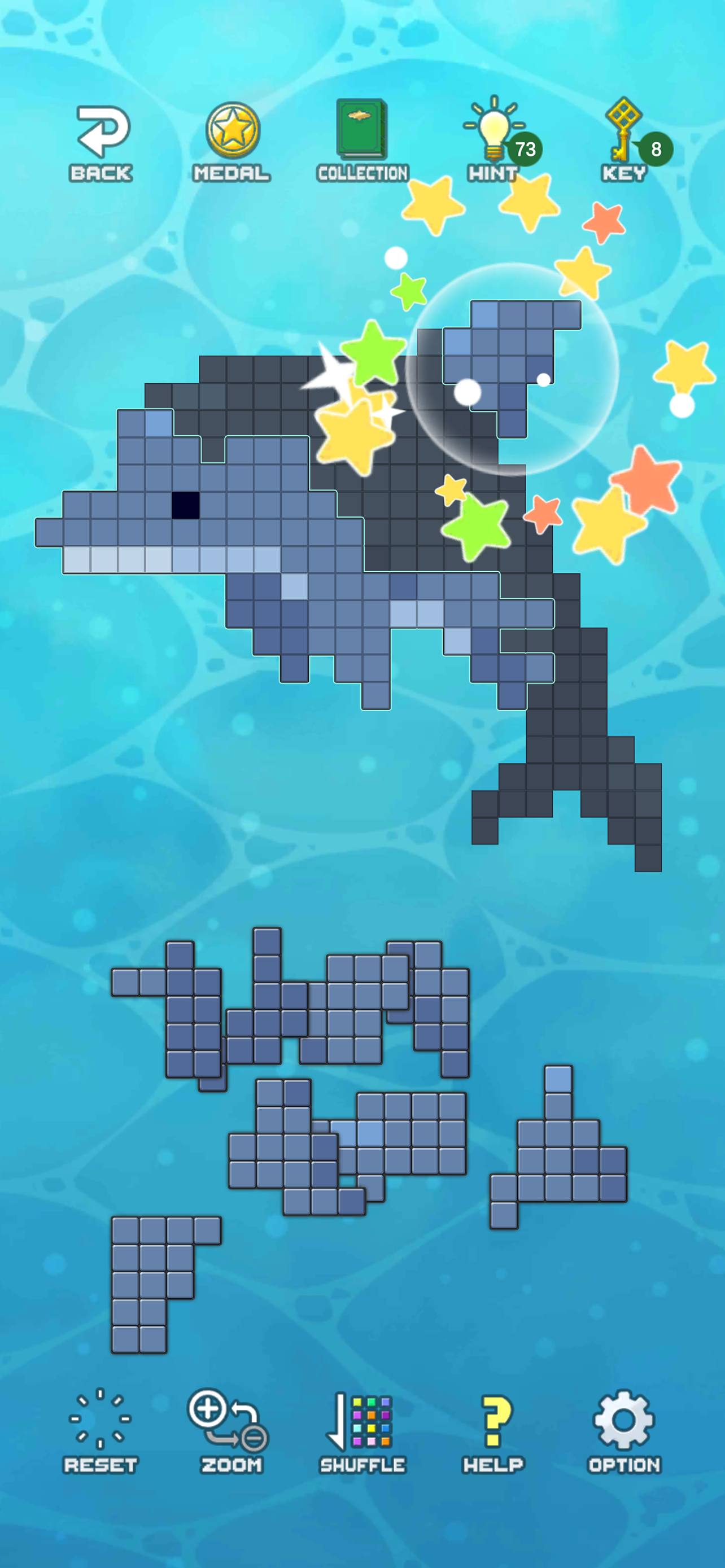 - A simple puzzle game where you place scattered dot pieces by referring to a template dot picture.