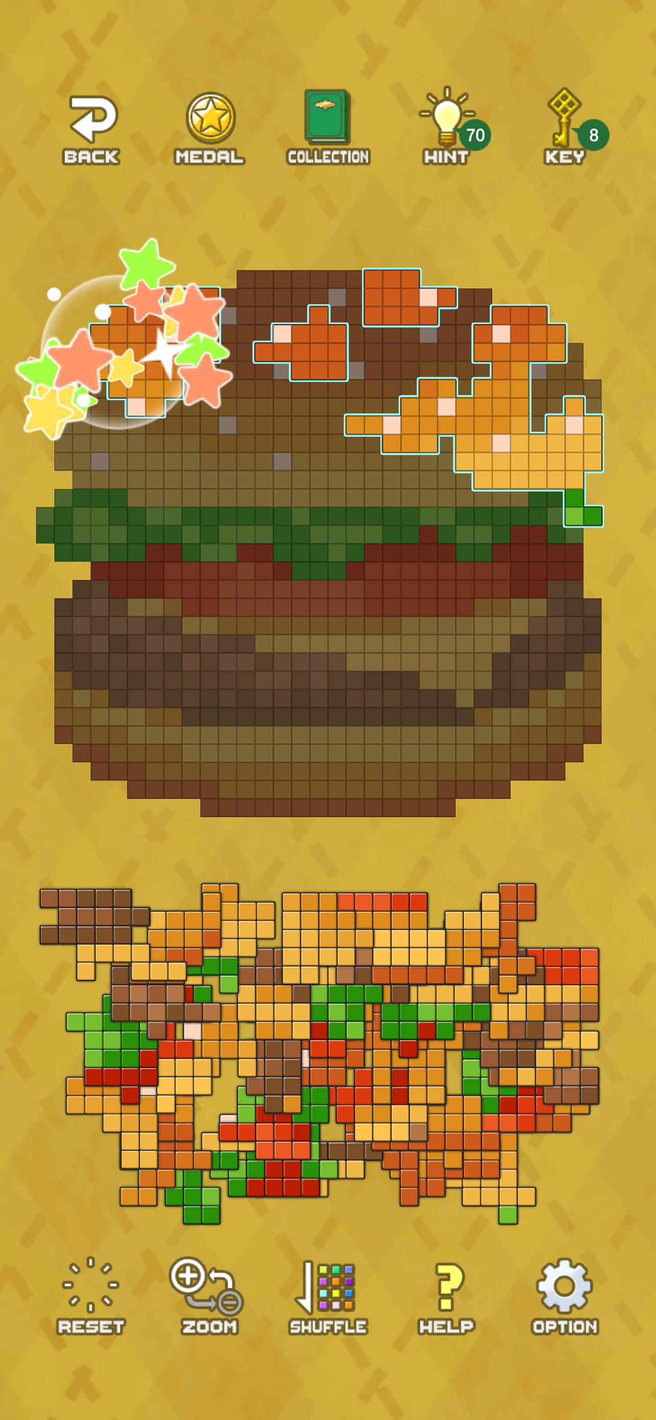 - ペンギンやネコなど、かわいい「どうぶつ」やおいしそうな「たべもの」、ポップな「のりもの」など、色々なドット絵パズルを解いてコレクションしていきましょう!